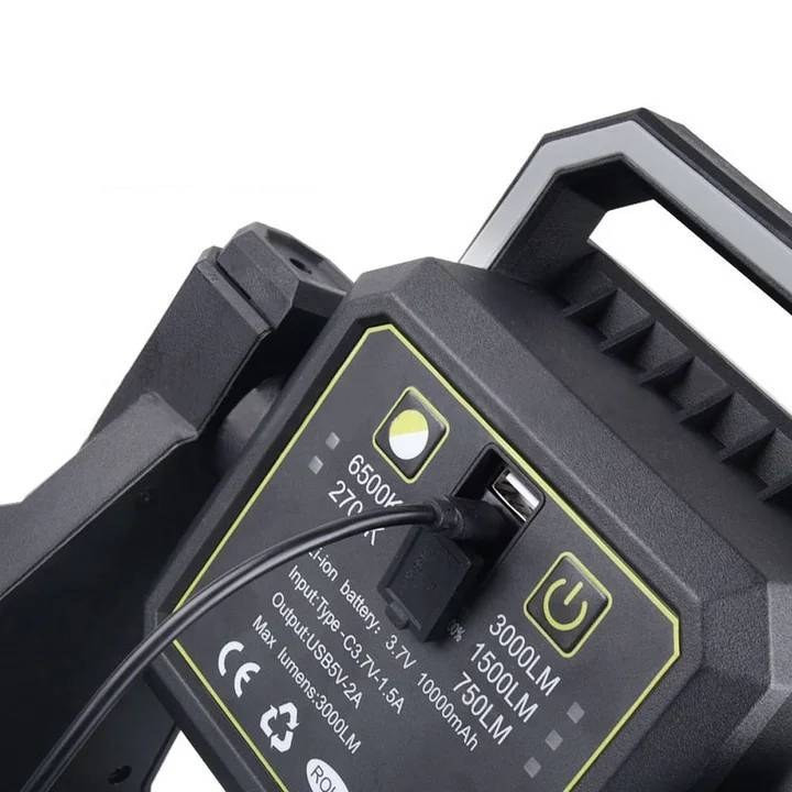 پروژکتور حرفه ای پایه دار با قابلیت نور دهی خیلی بالا multifunctional work light یکی از بهترین گزینههای روشنایی برای محیطهای بزرگ و تاریک مانند کمپینگ، مسافرتهای دستهجمعی و حتی استفاده در باغ یا فضای باز است. این محصول با برد نور 60 متری و شدت روشنایی حداکثر 3000 لومن، قادر است. در هر شرایطی نور کافی را فراهم کند که می توانید. بسته به نیاز حالت نوردهی را بین 3000، 1500، 750 لومن یا نور قرمز قابل تغییر است.