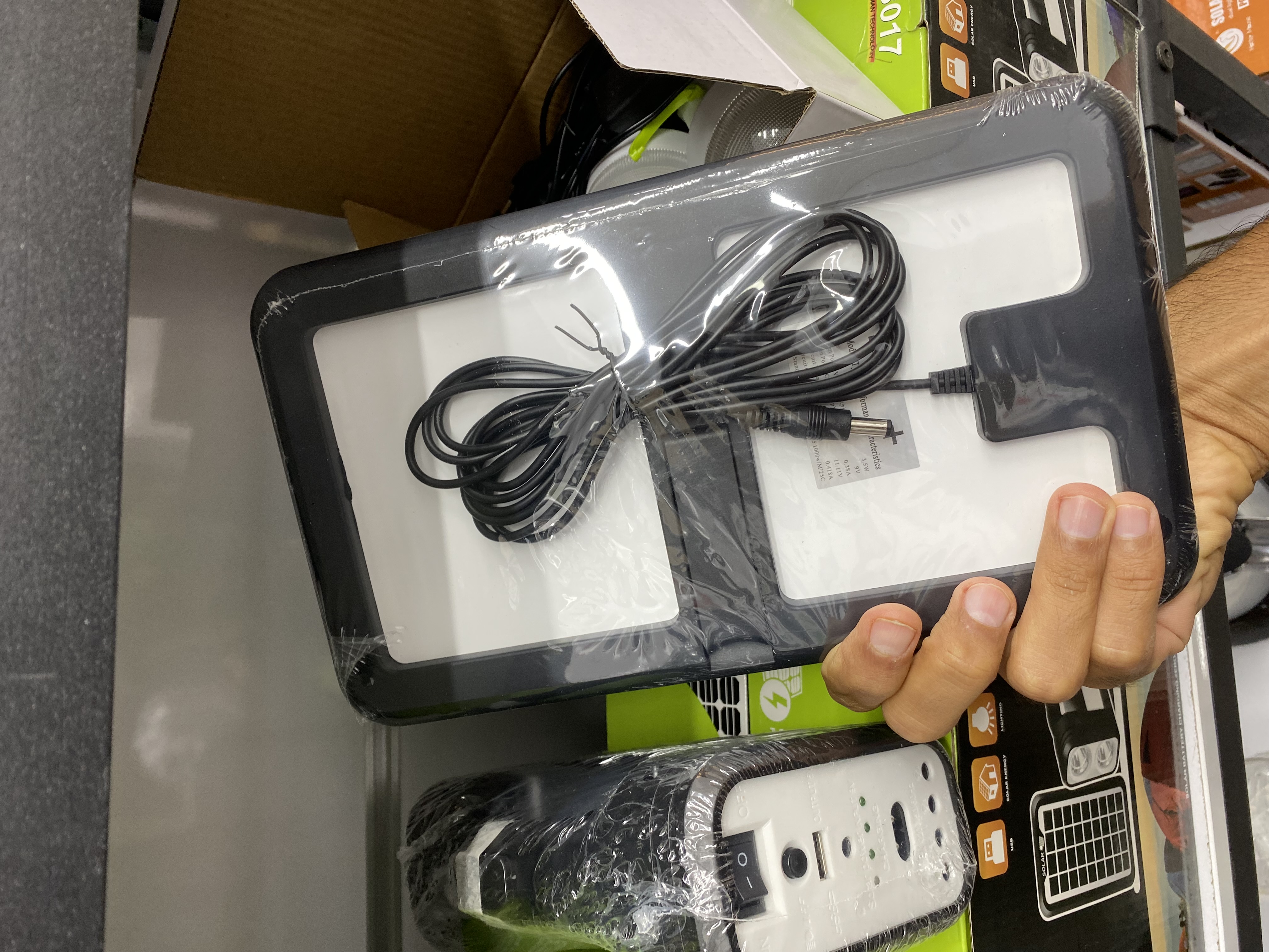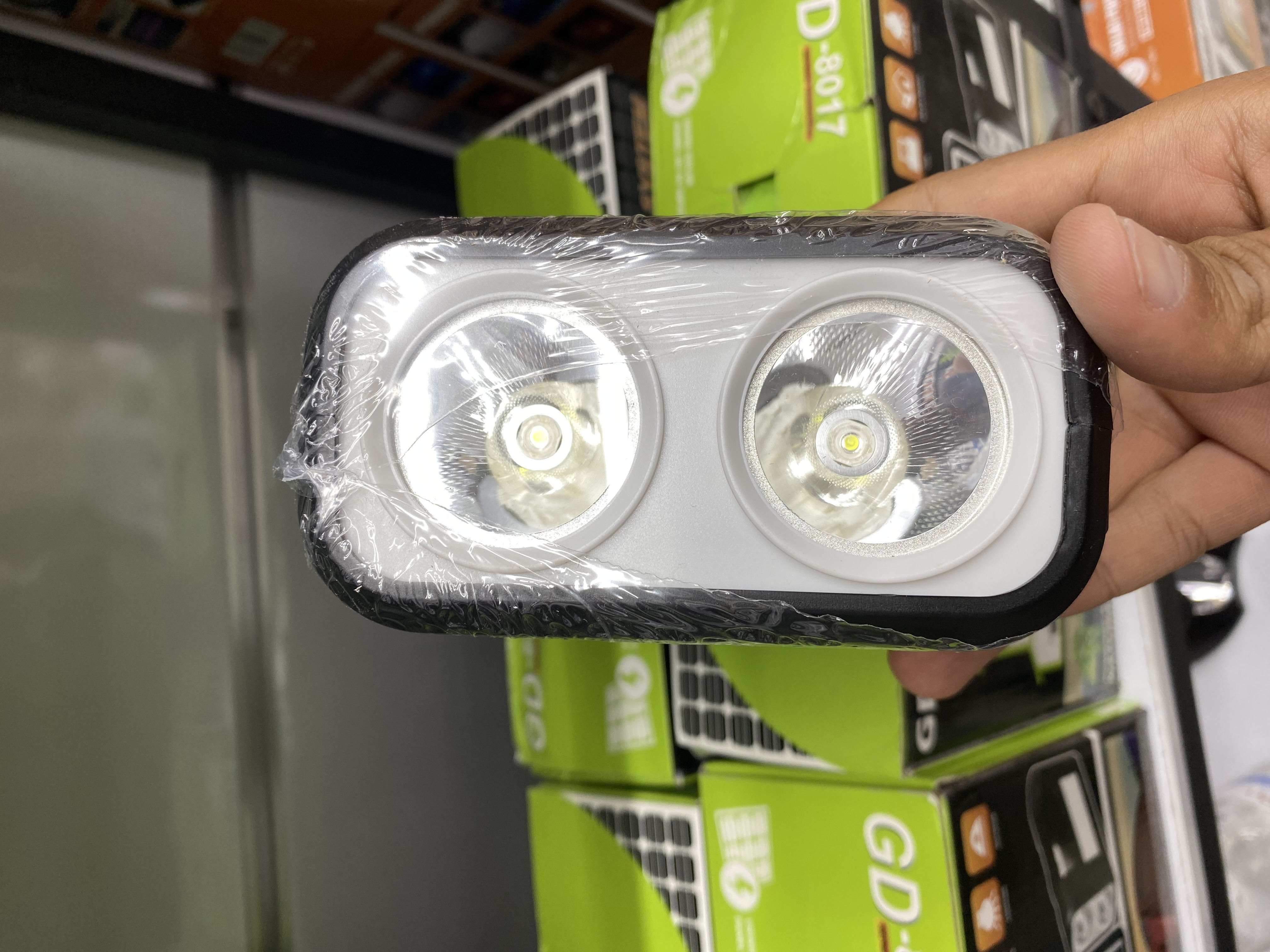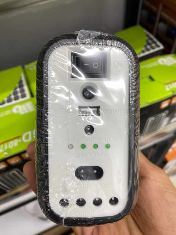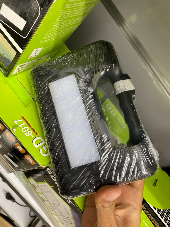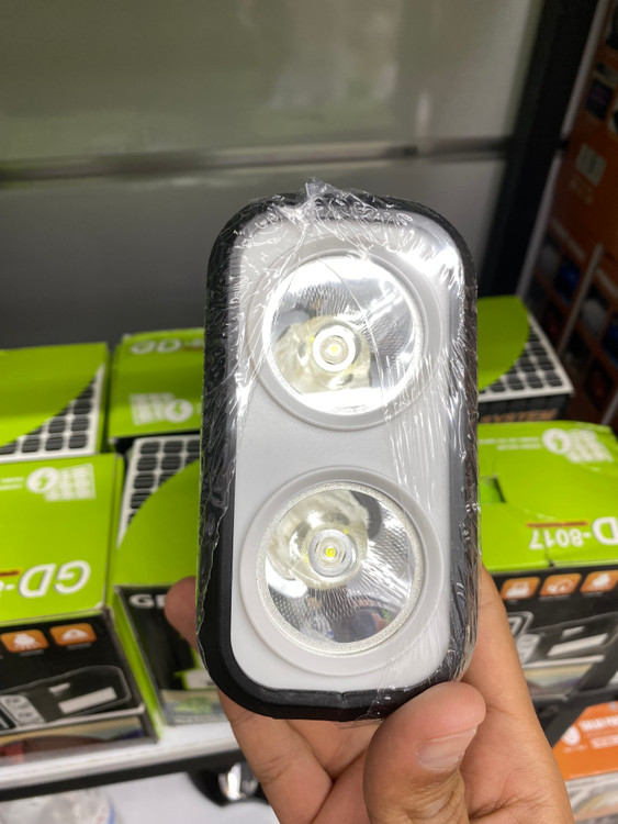 در ابتدا باید بگوییم که چراغ اضطراری GD8017 از سه قطعه که شامل چراغ روشنایی COB و LED، سه عدد لامپ ریسه ای مجزا و پنل خورشیدی تشکیل شده است. اولین بخش این محصول، پک روشنایی و پاروبانک است که در ابعاد 6*12*17 سانتی متر با وزن سبک طراحی شده است. همین وزن سبک و ابعاد جمع و جور یک ویژگی مثبت برای چراغ روشنایی اضطراری محسوب می شود که خیلی راحت می توانید آن را با خود حمل کنید.