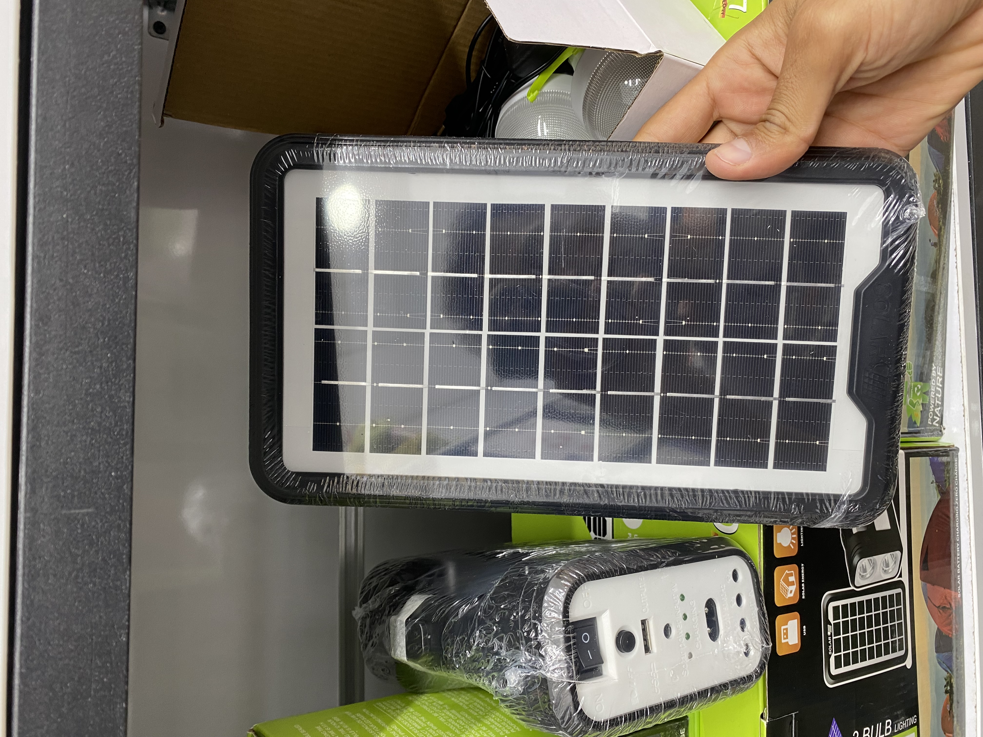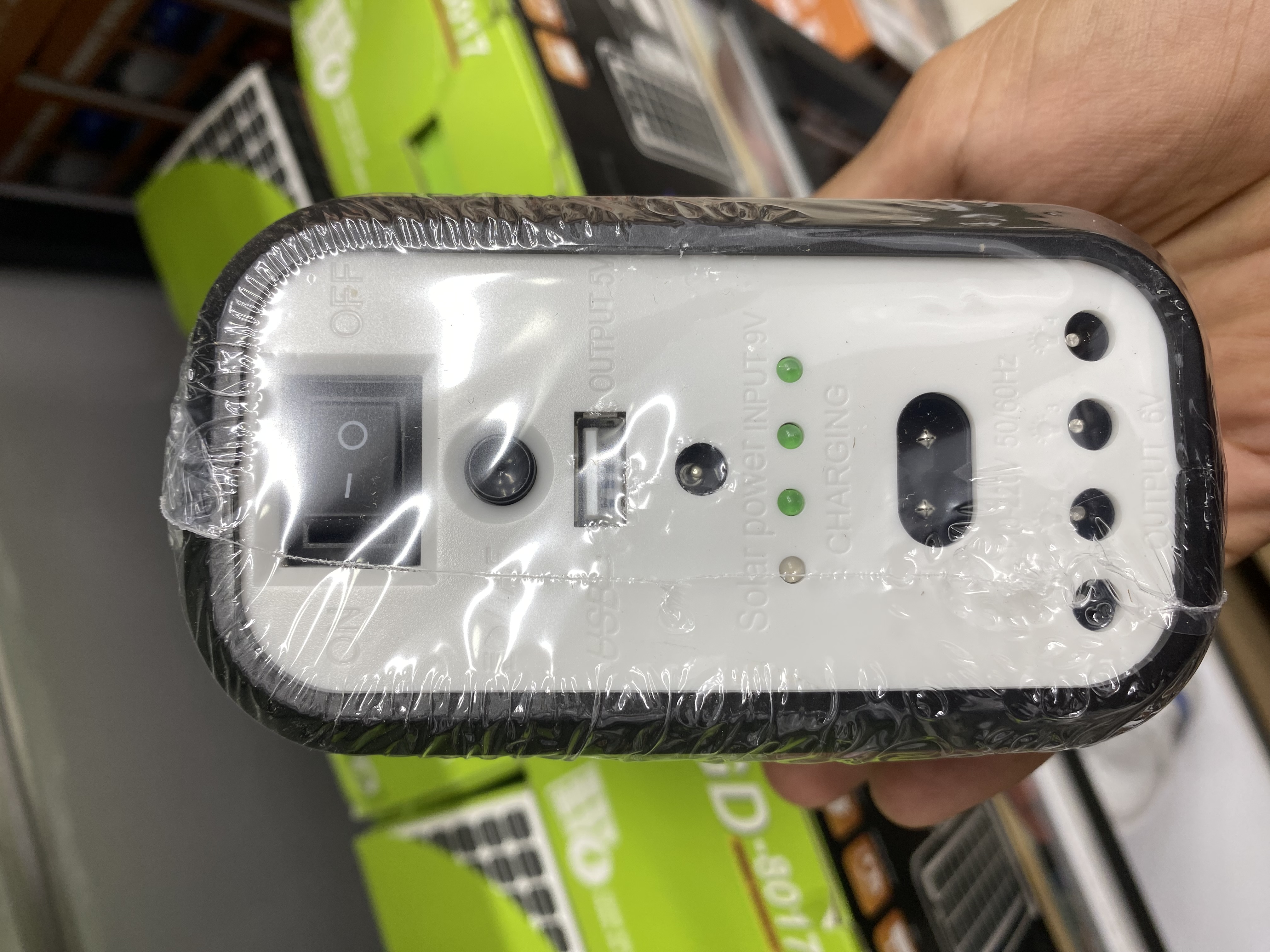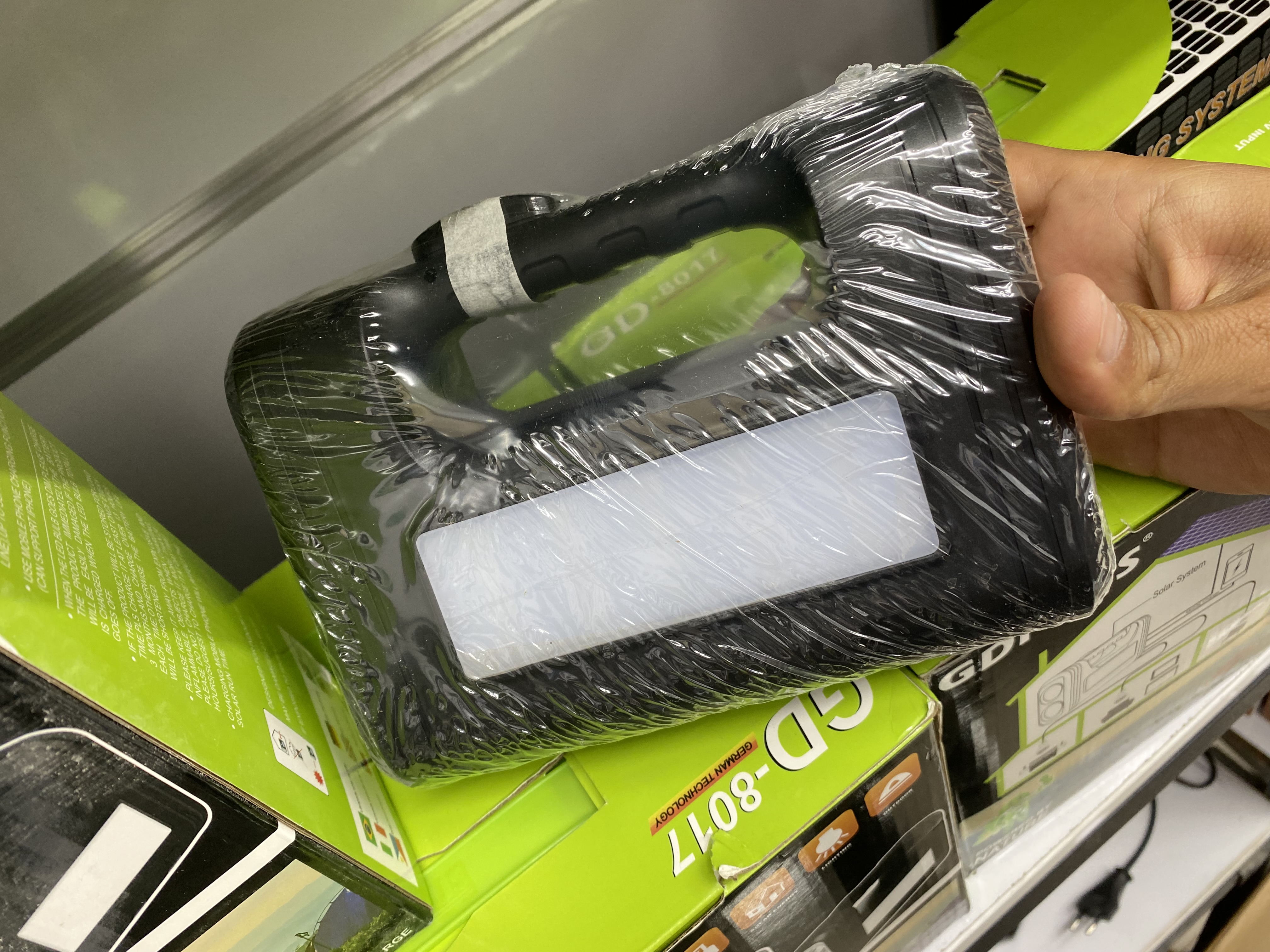 در ابتدا باید بگوییم که چراغ اضطراری GD8017 از سه قطعه که شامل چراغ روشنایی COB و LED، سه عدد لامپ ریسه ای مجزا و پنل خورشیدی تشکیل شده است. اولین بخش این محصول، پک روشنایی و پاروبانک است که در ابعاد 6*12*17 سانتی متر با وزن سبک طراحی شده است. همین وزن سبک و ابعاد جمع و جور یک ویژگی مثبت برای چراغ روشنایی اضطراری محسوب می شود که خیلی راحت می توانید آن را با خود حمل کنید.