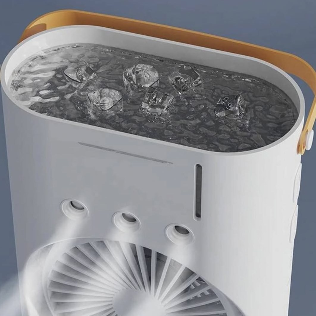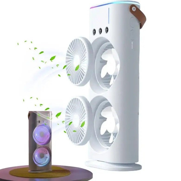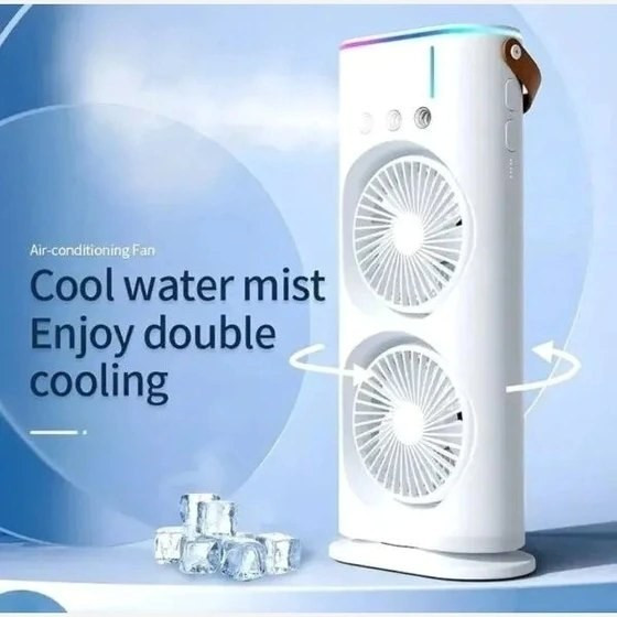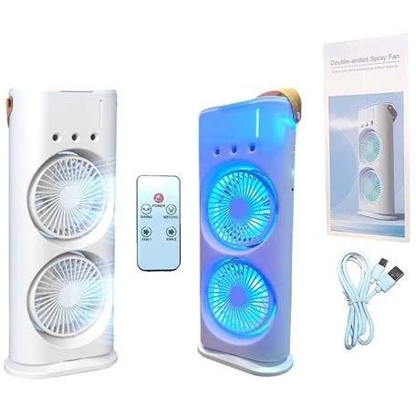 کولر شارژی رومیزی مه پاش دارای ریموت قابل تنظیم (اورجینال) دو فن ،پنکه شارژی مه پاش (عمده تماس)