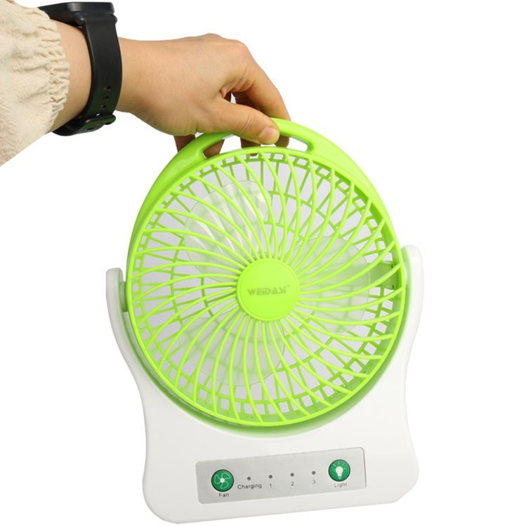 پنکه رومیزی شارژی ویداسی مدل WD-202 برای خنک کردن منازل و دفترکار و حتی در مسافرت و ماشین مورد استفاده قرار می گیرد. دارای قابلیت شارژ مجدد و دارای کابل USB مجهز به چراغ LED جهت زیبایی و نورپردازی و همچنین قابلیت تعویض باتری (نیم قلمی)